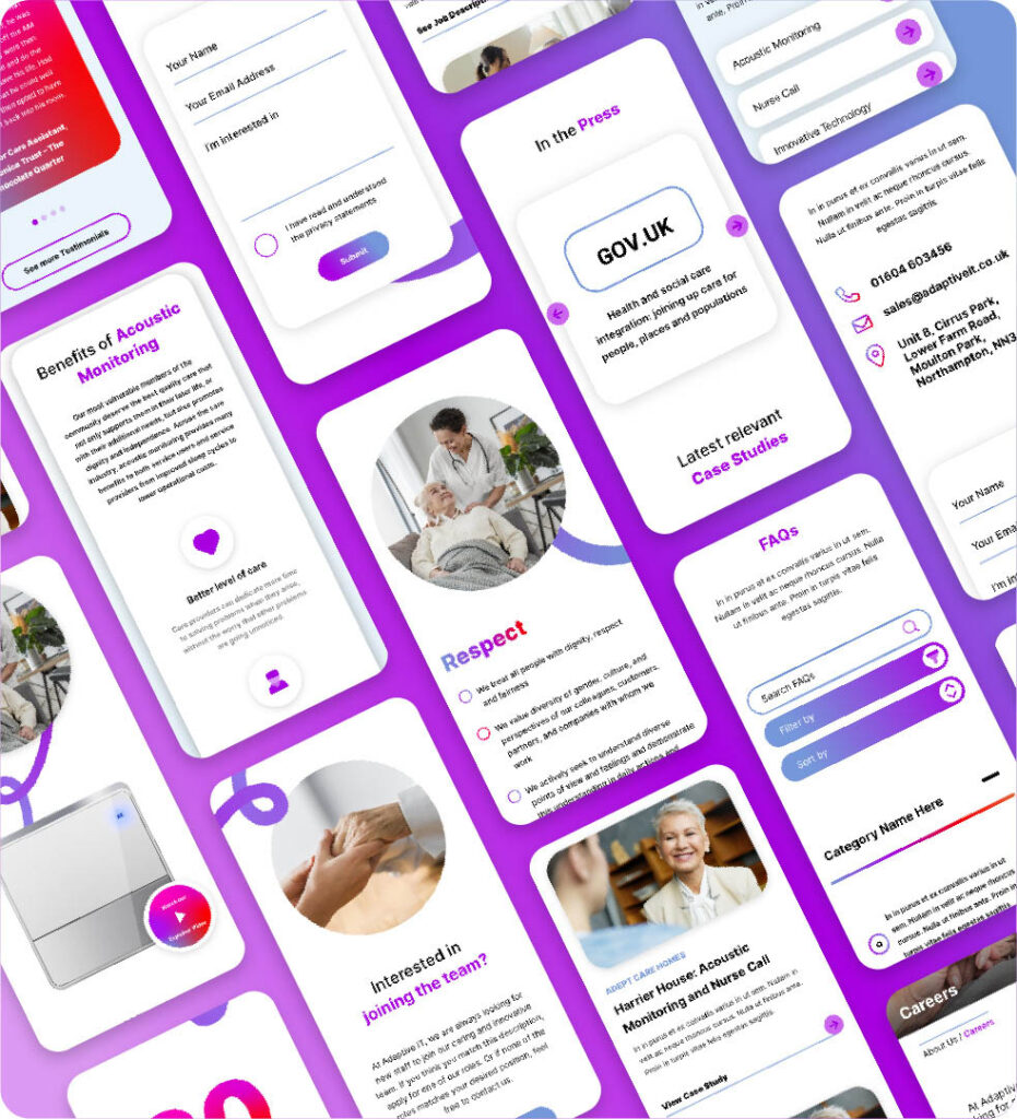 This website design was undertaken as a design-only project, in which we were to create a new website for a client during my time in agency to showcase their assisted care and care home monitoring products.