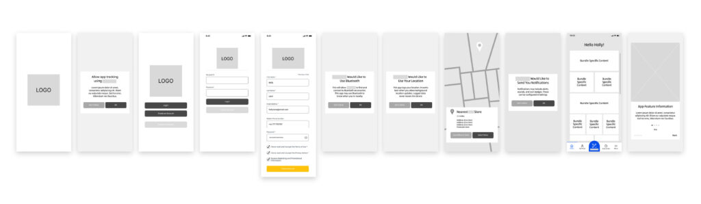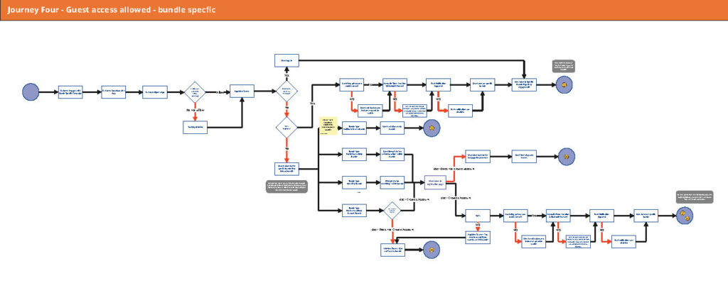 Another part of the project was to design the onboarding journey for the customer, to work with all instances of bundles within the application, ensuring all relevant information could be collected to enable all current and future services to function. The deliverables included wireframes & customer journey documents – See below