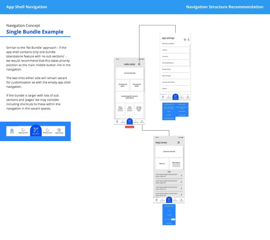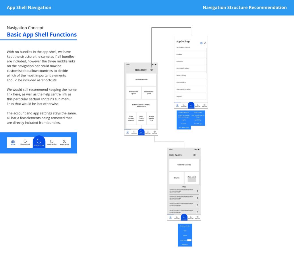 Design of a core app shell & foundation for a global retailer, for future instances of application releases where all ‘bundles’ or service packages would be consolidated into one singular app.