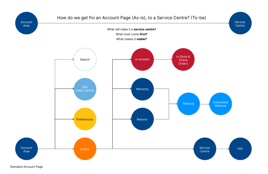 We first compared the ‘As is’ state (account area), to the future state and what functionality needed to be included for MVP and future scope.